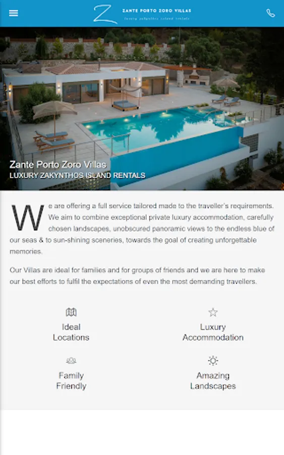 We are a property development and management company founded by a family and run on family values, embracing luxury hospitality and offering exemplary Villas in unique locations on popular and prime Greek Islands .