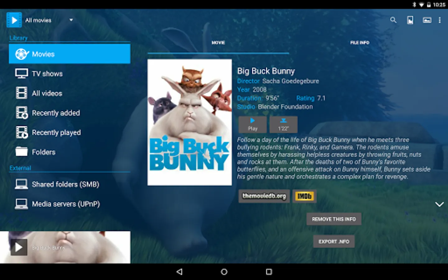 - Automatic online retrieval of Movie and TV show information with poster and backdrop for both local and network content;