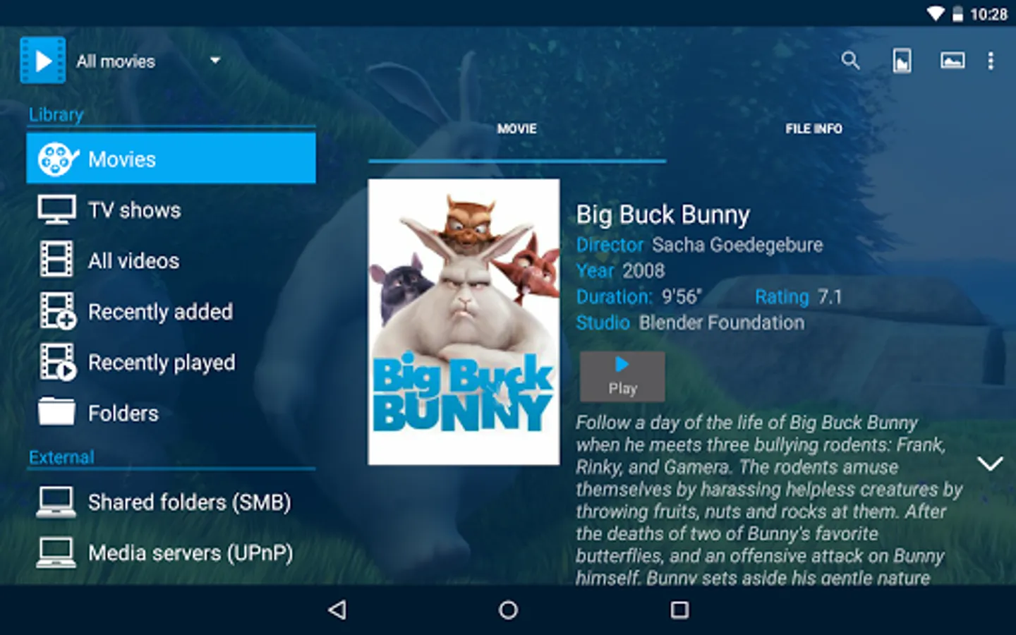 - Automatic online retrieval of Movie and TV show information with poster and backdrop for both local and network content;