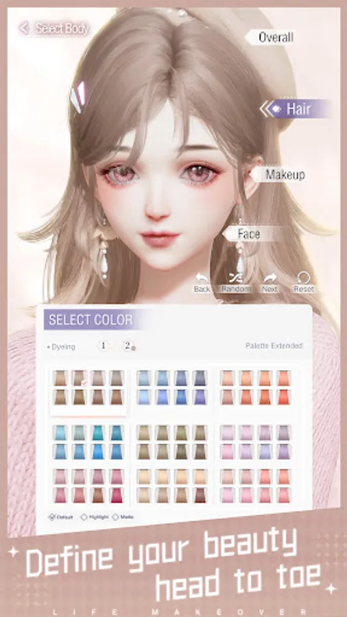 Life Makeover breaks through the boundaries of character customization. You can modify facial features in much further detail, as far as even the character's smiling expression. We depict every element of cosmetics in great detail and reproduce a plethora of gorgeous shades for you to choose from. Furthermore, you can select from a variety of skin tones and body shapes, expressing your limitless personalities from within the virtual world.