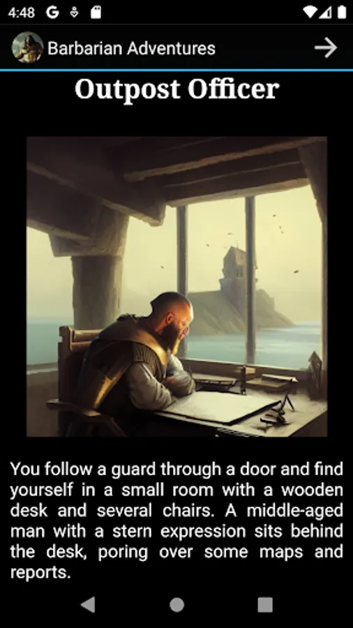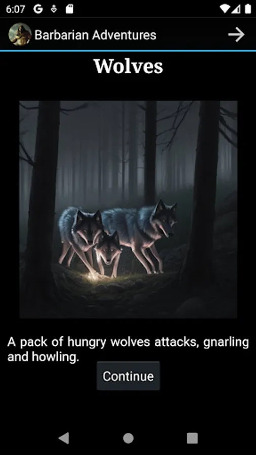 Barbarian Adventures is a fantasy role-playing game. You are a hardened northman that you have just stole a precious jewel from a wizard and you must now make your escape. The region you must go through is unknown to you and filled with dangers. You must run or fight in order to survive.