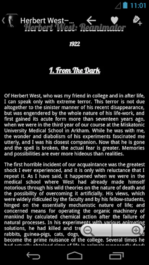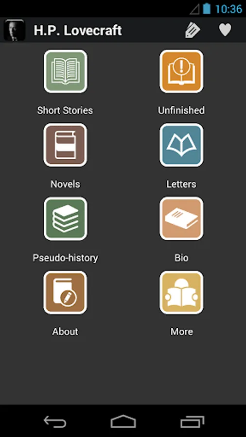 This lightweight app contains the complete horror fiction stories and novels written by H.P. Lovecraft.