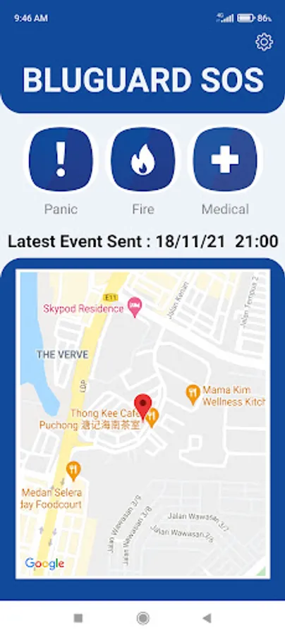 Bluguard SOS App is an emergency app that enables you to quickly send out your current GPS location along with your Panic/Fire/Medical event to the center. The operator at center will immediately process the incoming event and take action accordingly.