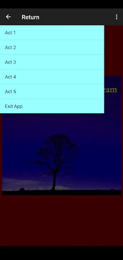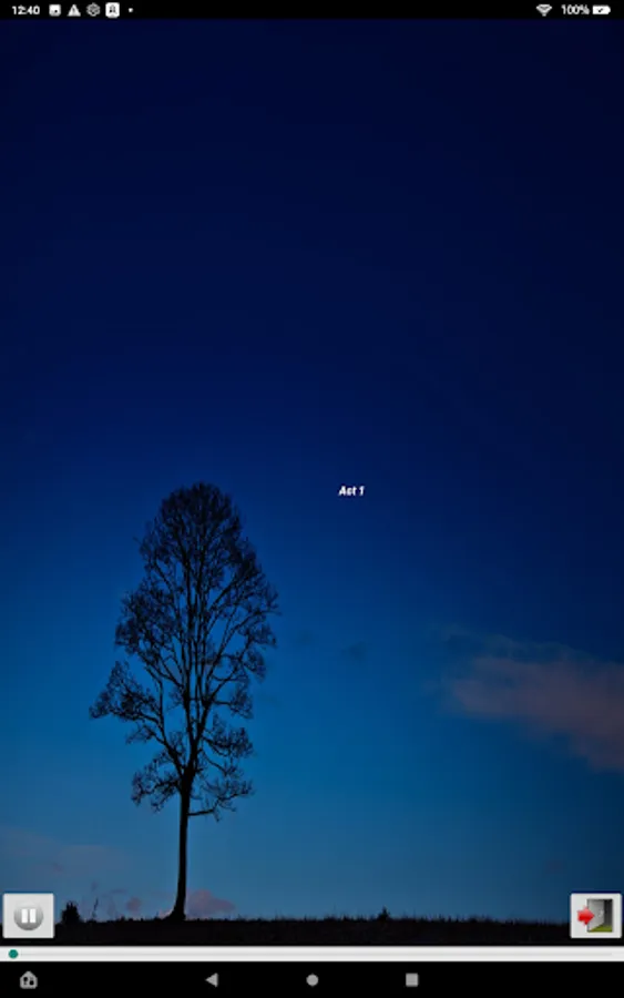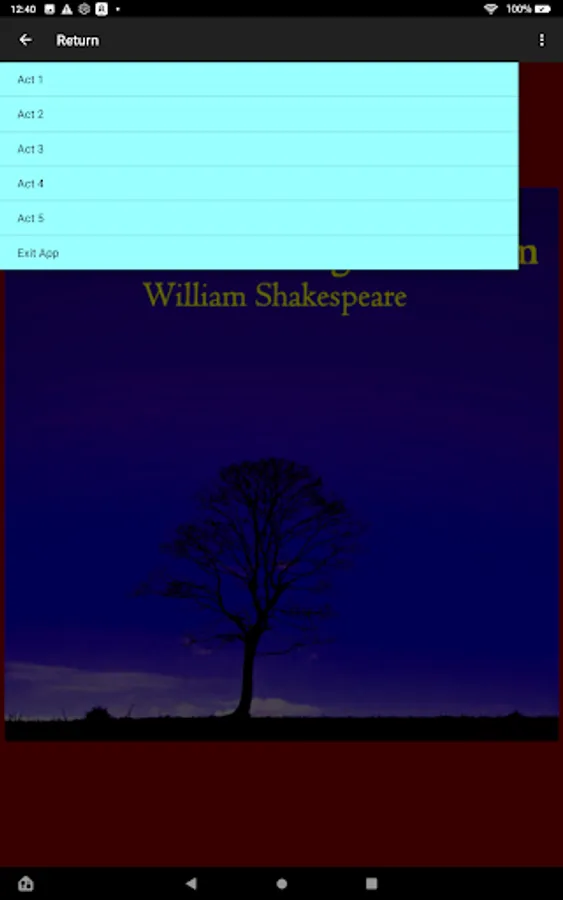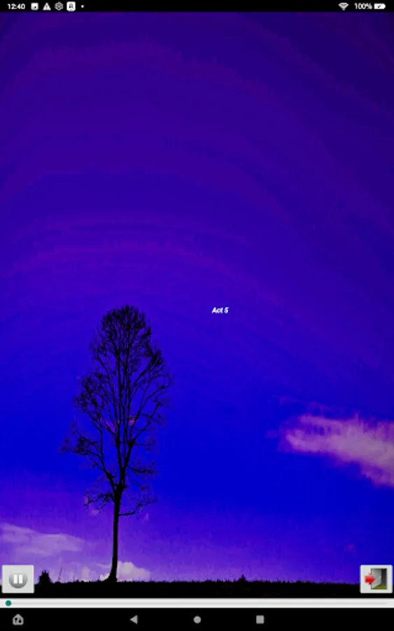 Listen using the built-in speakers, headphones, or ear buds. Swipe to move between acts or use the menu at the top.