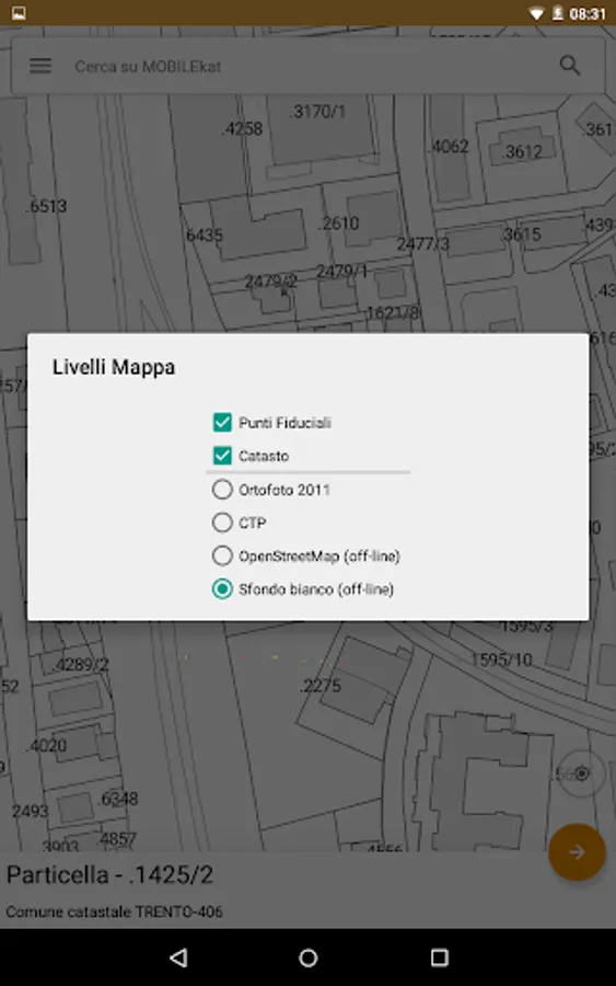MOBILEkat is an application for inspection of the cadastral map, the fiducial points and leveling benchmarks with their descriptions, coordinates, photographs and sketches directly on your Smartphone via internet.