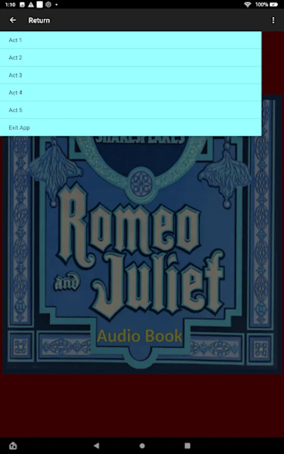 Listen to this classic using your device speakers, headphones, ear buds, or other connected device. Move from Act to Act through the main menu or by swiping on the screen. You can track the progress of the act through the bar at the bottom of the play screen.