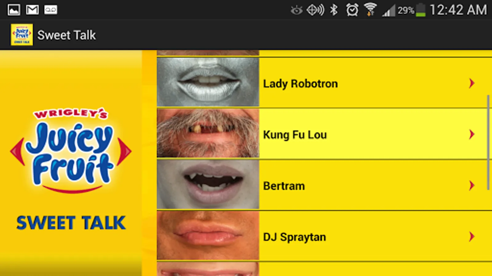 Get ready to spread some new sweetness with the Sweet Talk app. Simply choose from a whole new cast of mouthy characters, including one secret character, hold your Android under your nose, and let the sweetness fly.