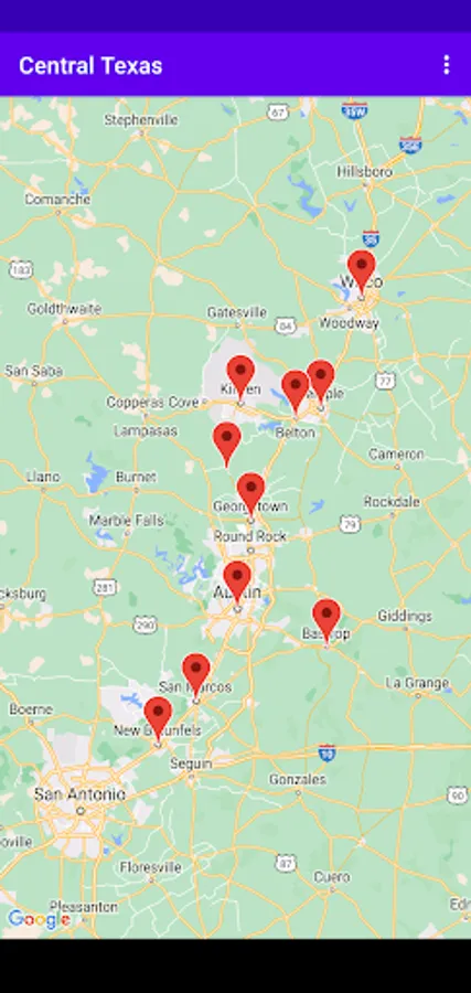 This is another of our apps focusing on providing information for those who are interested in exploring Texas. This app covers Central Texas. Locations featured, are Austin, Florence, Temple, Killeen, Belton, Georgetown, San Marcos, New Braunfels, Bastrop, Waco