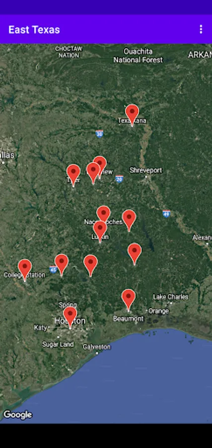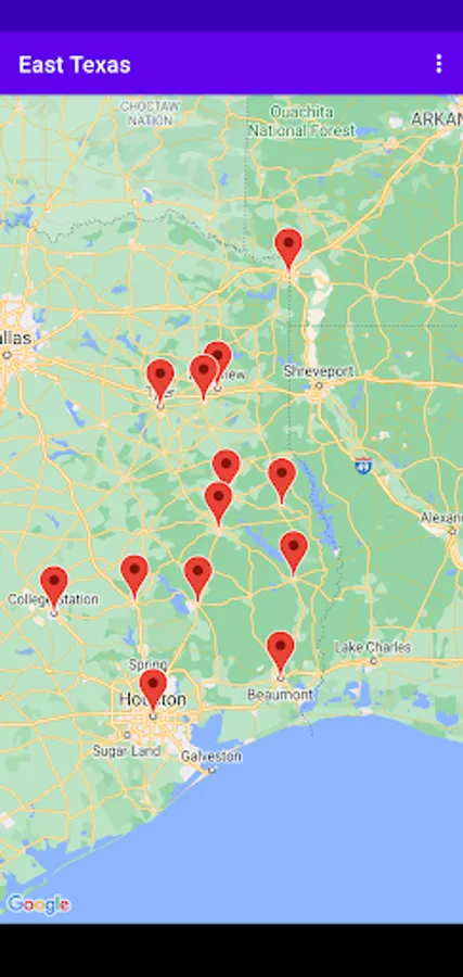 Locations featured, Houston, Beaumont, Jasper, College Station, Livingston, Nacogdoches, Lufkin, San Augustine, Huntsville, Kilgore, Longview, Texarkana, Tyler