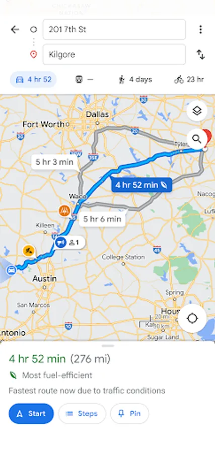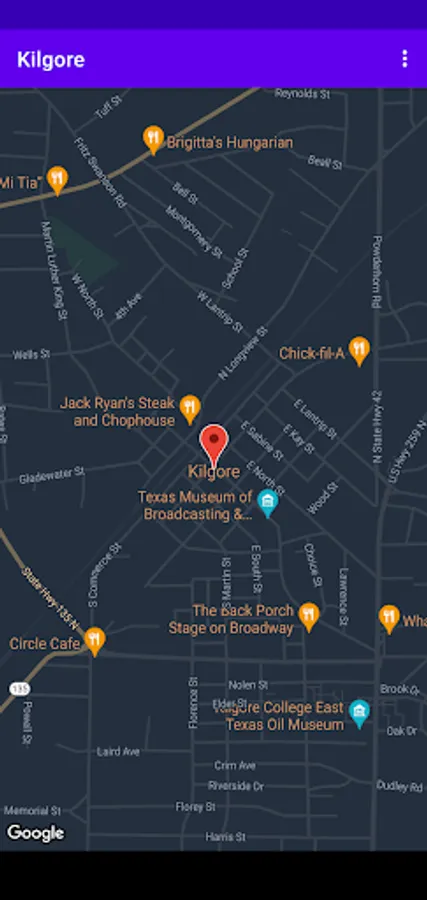 Locate the area you want to visit, press on the marker and you will be taken to a close up map of the city or area. Points of interest and local businesses are highlighted. Press on a point of interest and a panoramic view appears. Select Directions from the option menu, and the app will give you driving directions from you current location to the destination.
