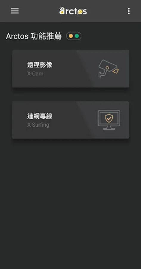Arctos Client APP will have four application functions: 1. Remote video (X-Cam), 2. Internet connection (X-Surfing), 3. Private conversation (X-Talk), 4. Private cloud access (X- Storage). The first to appear in 2020 are "Remote Video" and "Connected Dedicated Line".