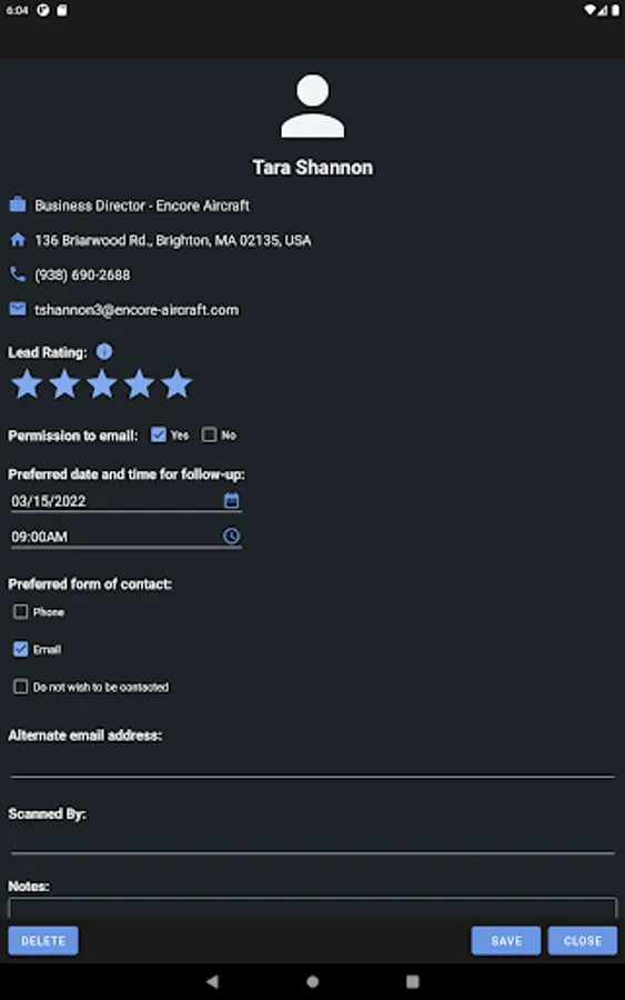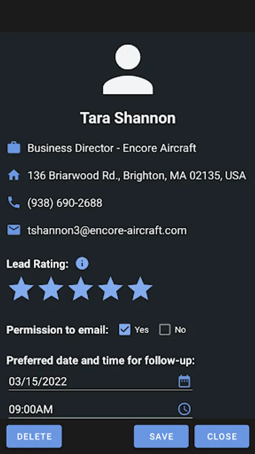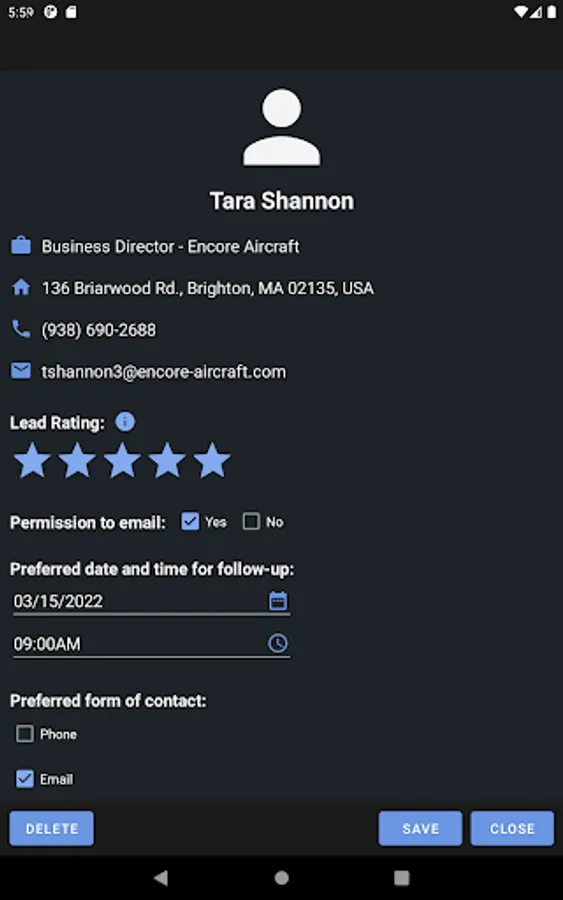 - Qualify the lead by specifying their rating. Include additional information such as notes and their contact preferences.