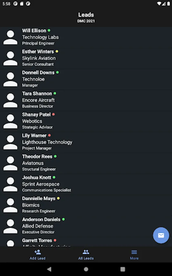 - Tap the mail icon on the bottom right of the All Leads tab to export your leads to an excel spreadsheet. Once the spreadsheet is created, a menu will pop up giving you the option to share it with an app of your choosing.