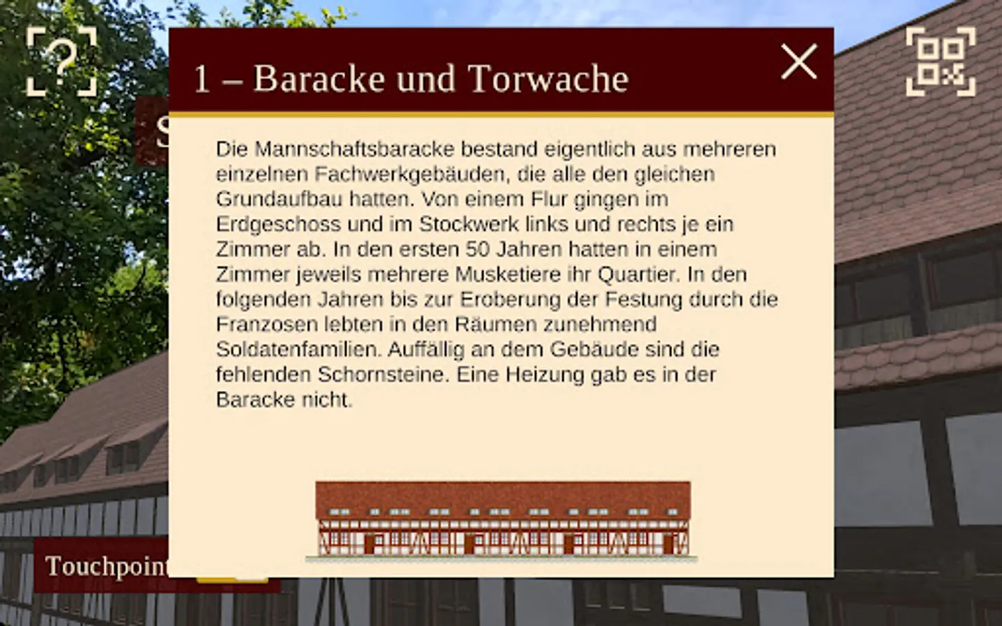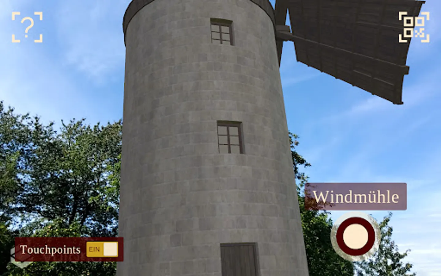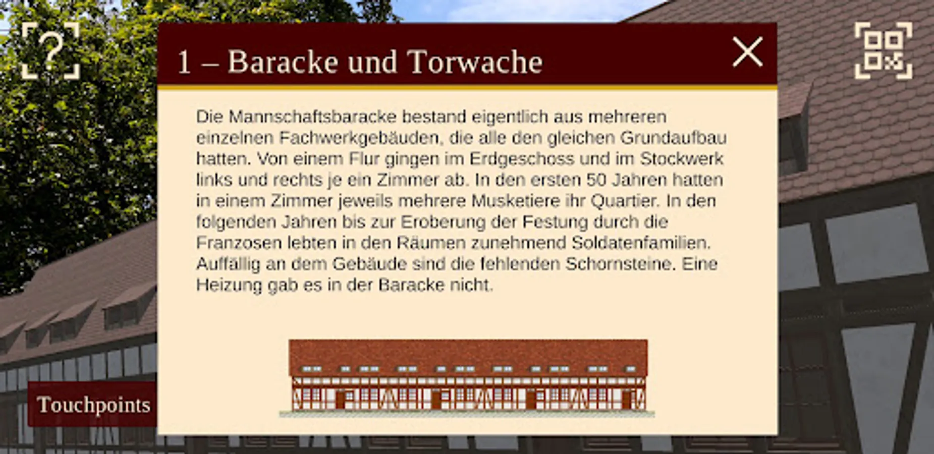 The functions of the app are limited on devices without an AR core. AR display at the real position is not possible, instead the AR buildings can be seen in miniature format.