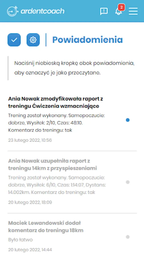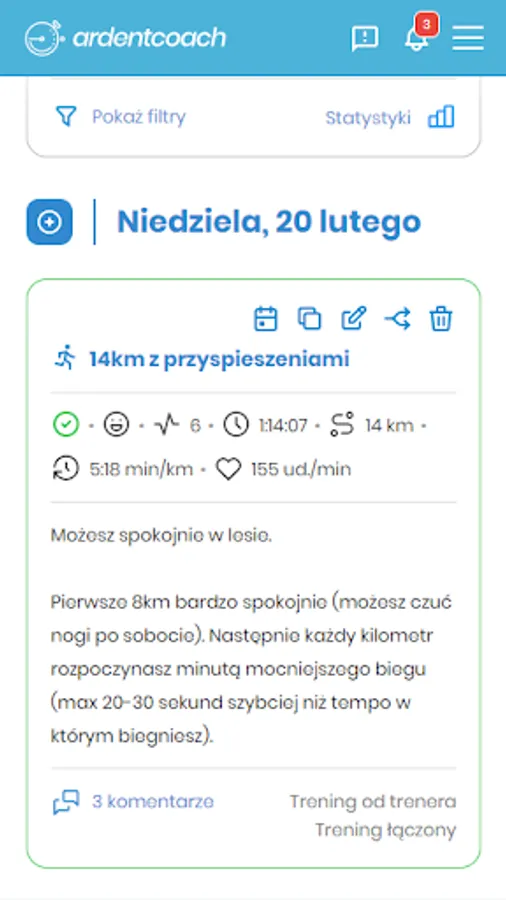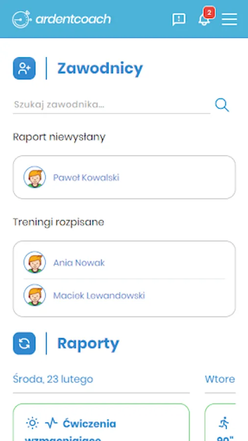 ArdentCoach is an application dedicated to sports coaches (mainly running, cycling, swimming and triathlon). Supports and facilitates communication and tracking sports progress.