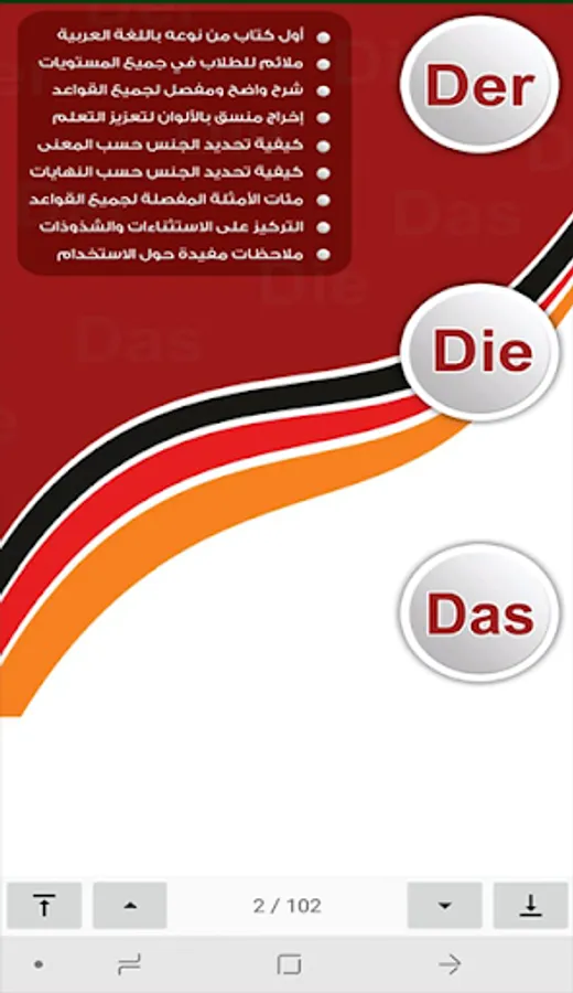 For the first time a special book for the Arabs in learning German, explaining the final solution to the problem of Ertekl in German der die das