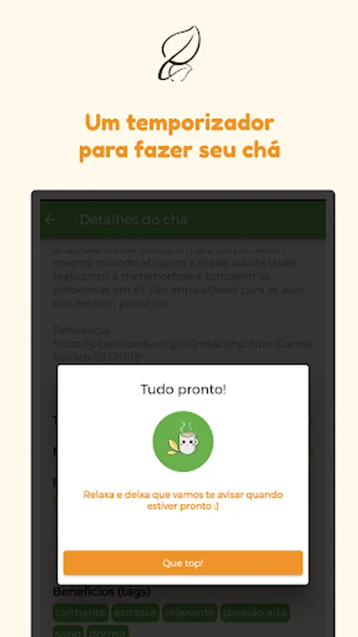 There's also a timer, as iTea also contains your tea's brewing time information, so when you put it on the fire, you can expect the app to let you know when it's ready. Wonderful, isn't it?!