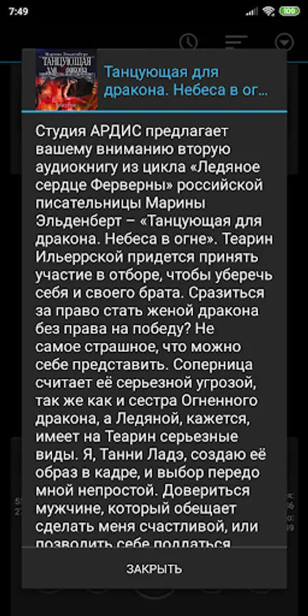 ARDIS Studio brings to your attention the second audiobook from the series “Froverna’s Frozen Heart” by the Russian writer Marina Eldenbert - “Dancing for the Dragon. Heaven is on fire. ”