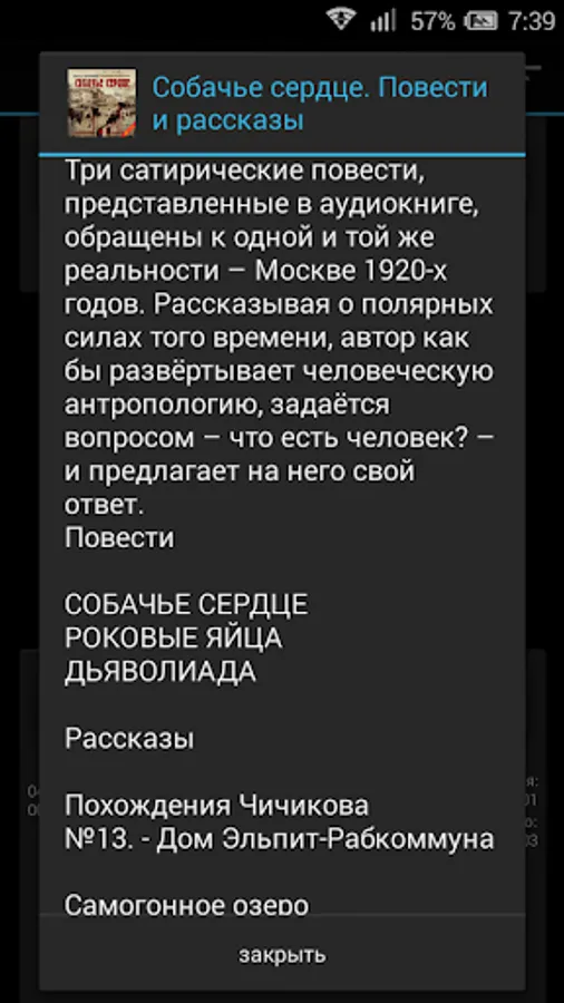 Three satirical story presented in audiobook, facing the same reality - Moscow 1920. Talking about the polar forces of the time, as if the author deploys human anthropology asks - what is man? - And offers him his answer.