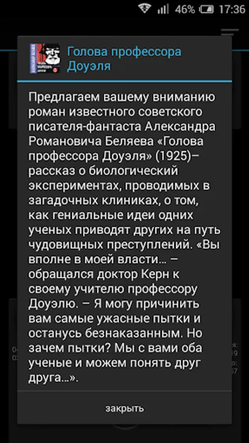 We bring you the novel by the famous Soviet science fiction writer Alexander Romanovich Belyaev "Professor Dowell's Head" (1925) - the story of the biological experiments carried out in the mysterious clinics, how brilliant ideas of some scientists lead others on the path of monstrous crimes. "You are quite in my power ... - Dr. Kern turned to his teacher Professor Dowell. - I could cause you the most horrible torture and remain unpunished. But why torture? We're both scientists, and we can understand each other .... "