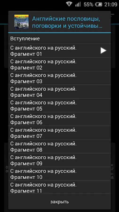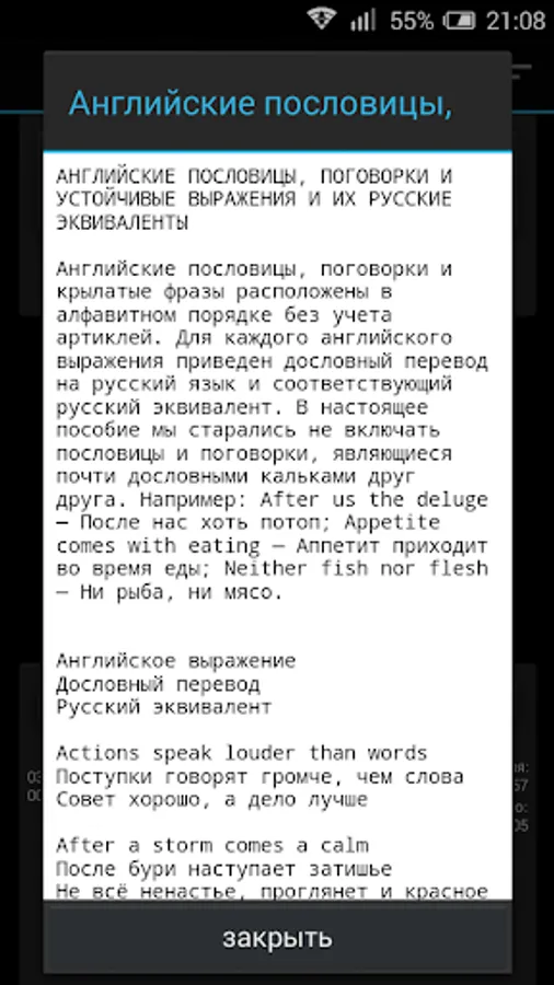 In the second part, designed to reinforce the learning and self-assessment, in the beginning sounds a Russian proverb, and then - after a pause - its English counterpart.