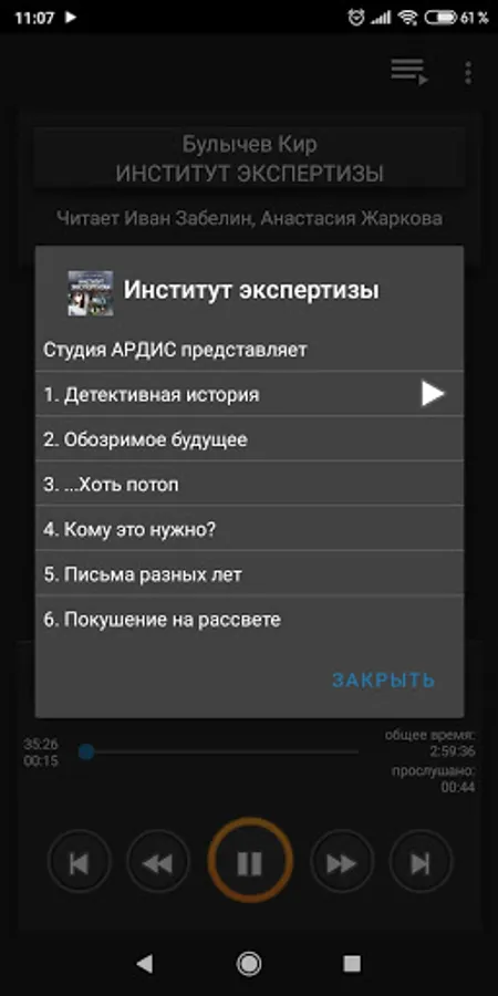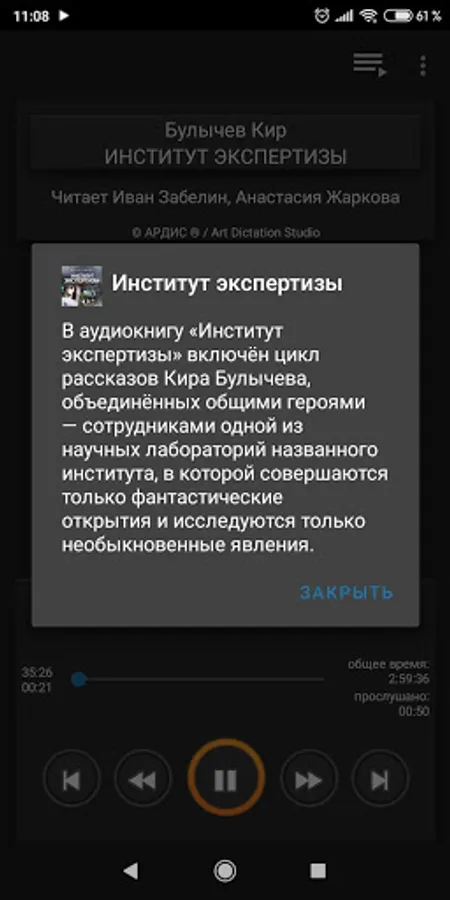 The audiobook "Institute of Expertise" includes a cycle of stories by Kir Bulychev, united by common heroes - employees of one of the scientific laboratories of the named institute, in which only fantastic discoveries are made and only extraordinary phenomena are investigated.