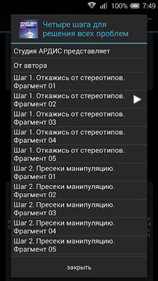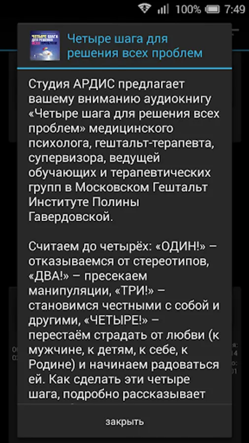 ARDIS Studio offers you the audiobook "Four Steps to solve all problems," clinical psychologist, Gestalt therapist, supervisor, leading educational and therapeutic groups in Moscow Gestalt Institute Pauline Gaverdovsky.