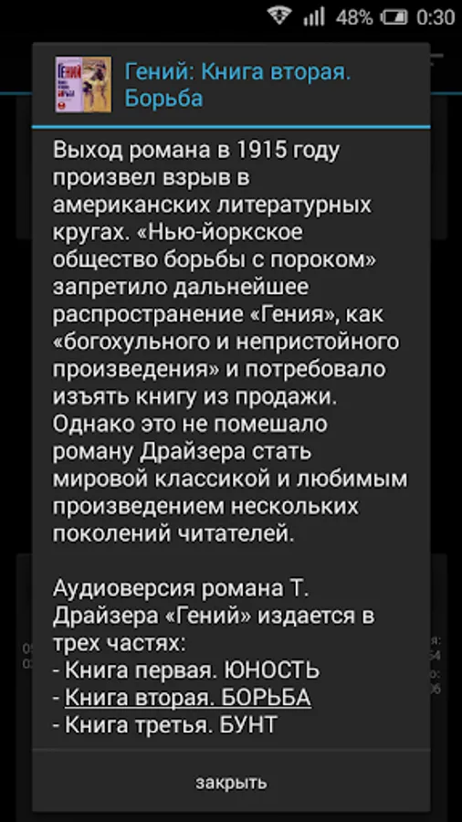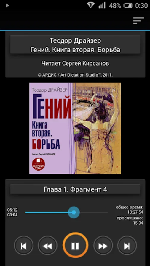 Audio version of the novel T. Dreiser's "Genius" is published in three parts:
