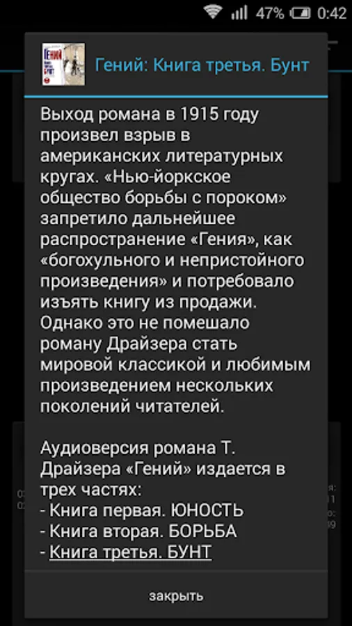 Out of the novel in 1915, he produced an explosion in American literary circles. "The New York Society of combating vice" has banned the further spread of "the Genius", as "blasphemous and obscene works" and demanded to withdraw the book from sale. However, this did not prevent Dreiser novel to become a world classic and favorite work of several generations of readers.