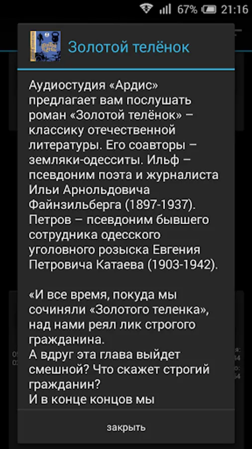 Audiostudiyu "Ardis" offers you to listen to the novel "The Golden Calf" - a classic of Russian literature. His co-authors - fellow-Odessa. Ilf - the pseudonym of the poet and journalist Ilya Arnol'dovich Fainzilberg (1897-1937). Petrov - nickname of the former employee of the Odessa Criminal Investigation Eugene Petrovich Kataev (1903-1942).
