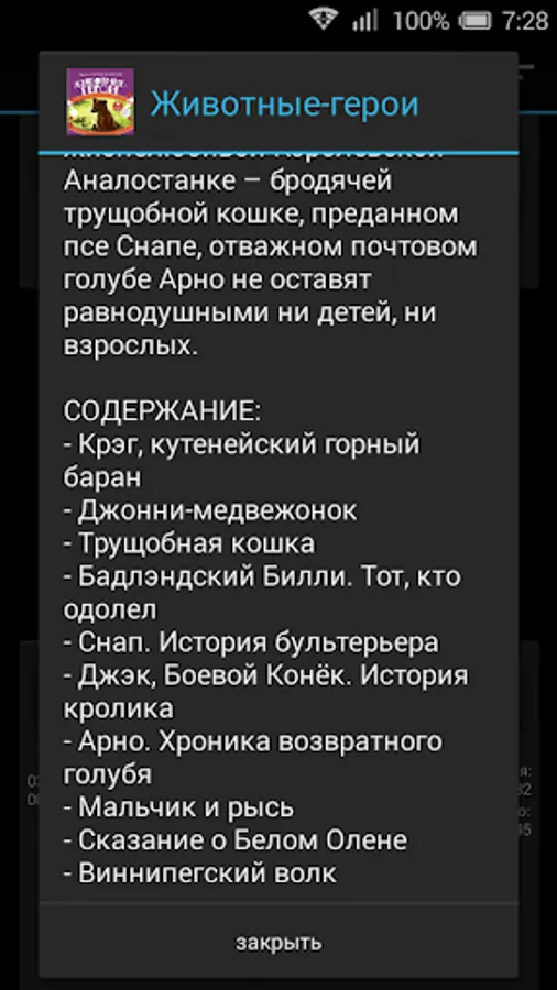 Bright and honest, funny and sad, touching and good stories about the fearless rabbit named Jack - Battle Horse, amusing bear cub Johnny, invincible wolf Billy noble ram Craig, active Royal Analostanke - wandering slum cat devotional pse Snape, brave homing pigeons Arno will not leave indifferent neither kids nor adults.