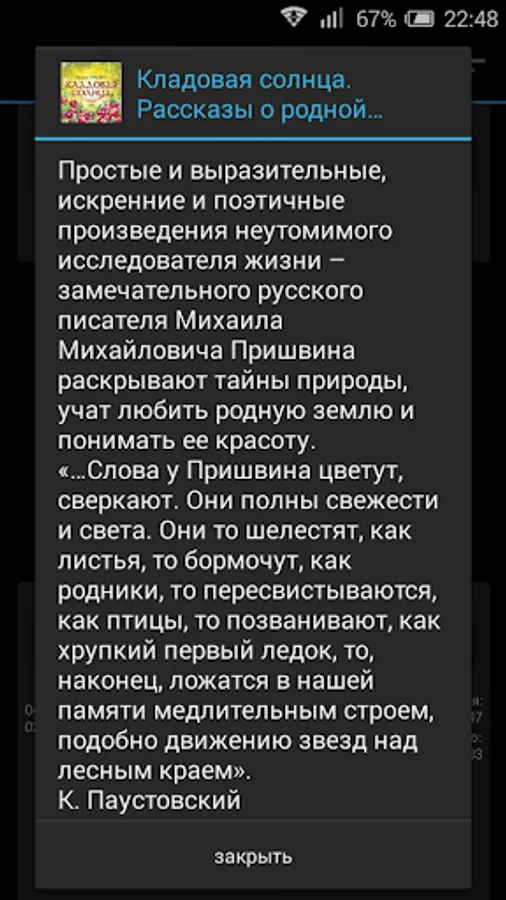 "... The words have Prishvina bloom, sparkle. They are full of freshness and light. They then rustle like leaves, muttering something like springs, the peresvistyvayutsya like birds, the tinkling, like the fragile crust of ice first, then finally lay down in our memory slow formation, similar to the motion of stars over the edge of the forest. "