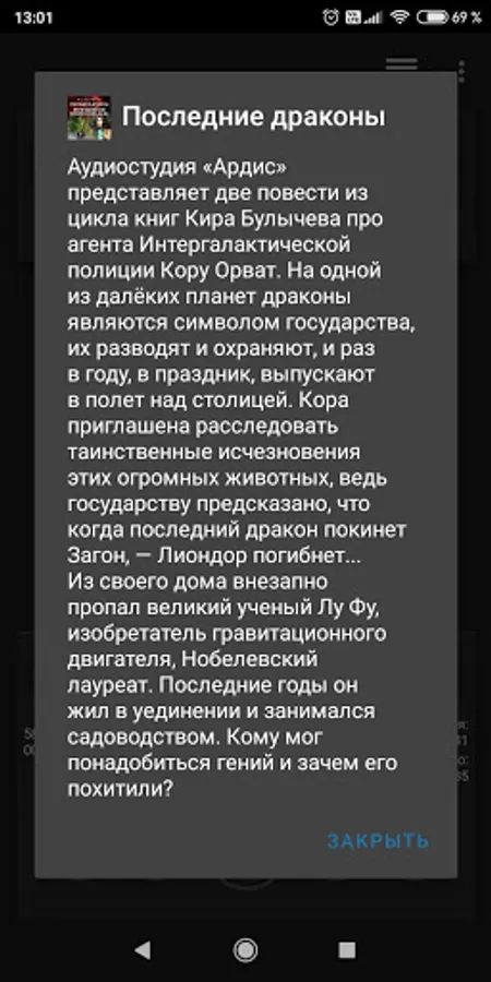 On one of the distant planets, dragons are a symbol of the state, they are bred and protected, and once a year, on a holiday, they are released in flight over the capital. Cora is invited to investigate the mysterious disappearances of these huge animals, because the state is predicted that when the last dragon leaves the Corral, Liondor will die ...