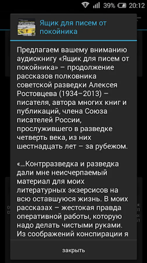 We bring you the audiobook "box of letters from the deceased" - continuation of the story of the Soviet intelligence Colonel Alexei Rostovtsev (1934-2013) - a writer, author of many books and publications, member of the Union of Writers of Russia has served in Intelligence quarter of a century, of which sixteen years - abroad.