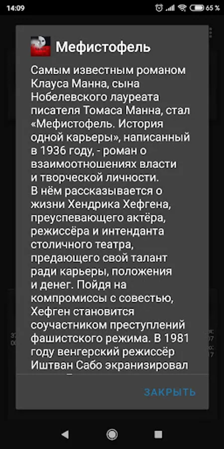 The most famous novel by Klaus Mann, the son of Nobel laureate writer Thomas Mann, is Mephistopheles. The Story of a Career ”, written in 1936, is a novel about the relationship between power and a creative person. It tells the story of the life of Hendrik Hefgen, a successful actor, director and intendant in the capital's theater, who betrays his talent for his career, position and money. Making compromises with his conscience, Hefgen becomes an accomplice in the crimes of the fascist regime. In 1981, Hungarian director Istvan Szabo filmed the book. The main role in the film is played by Klaus Maria Brandauer.