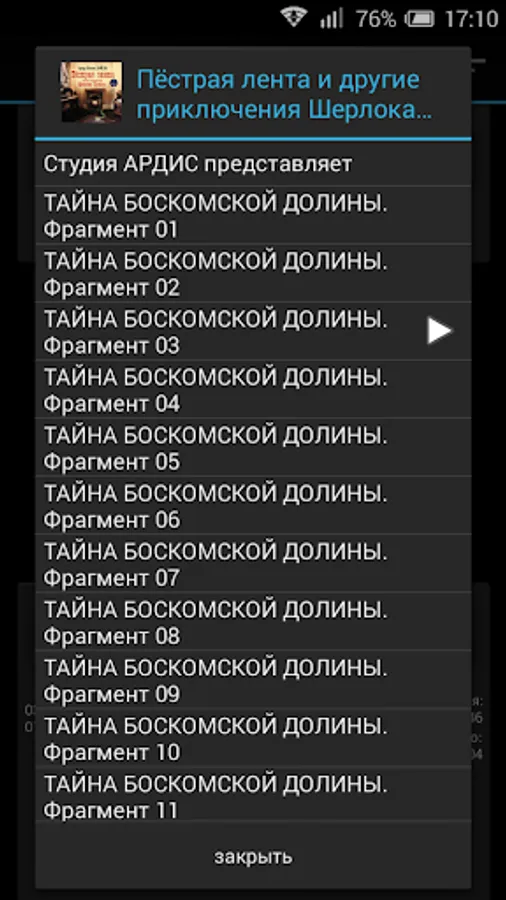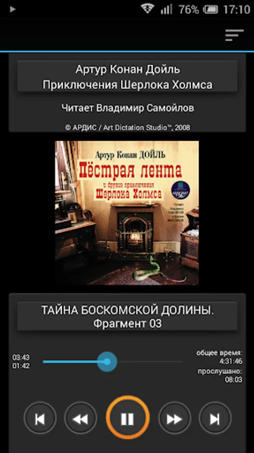 In the audio book includes stories from the book "The Adventures of Sherlock Holmes":