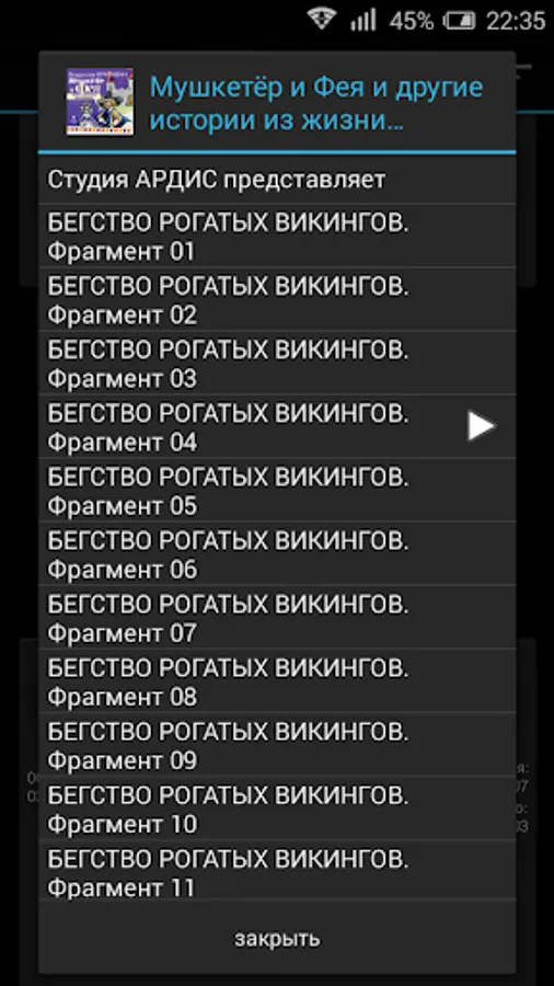 Cycle up the story "Flight horned Viking", "Next crocodile", "Musketeer and a fairy", "Helm Knight" and "The Mystery of the Pyramids."