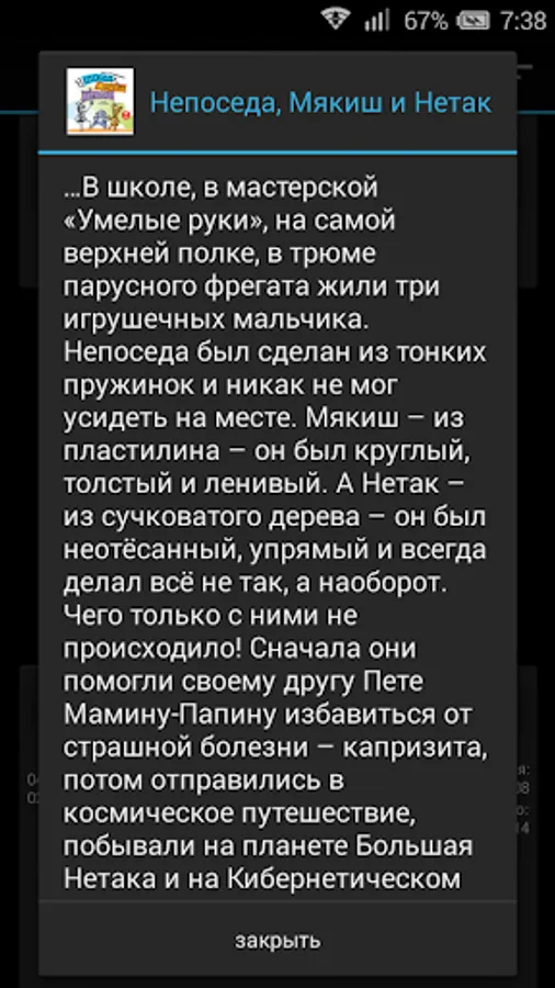 ... At school, in the studio "Skilful hands", on the top shelf, in the hold of a sailing frigate were three toy boy. Hurry was made of thin springs and could not sit still. Crumb - from clay - it was a round, fat and lazy. A netak - of gnarled tree - he was uncouth, stubborn and always did everything wrong, and vice versa. What has not happened to them! First, they helped their friend Pete Mamin-Papineau get rid of a terrible disease - kaprizita, then went to space travel, visited the planet Big netak and Cybernetic island ...