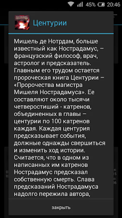 His main difficulty remains prophetic book Centuries - "Prophecies of Michel Nostradamus Master." It consists of about a thousand quatrains - quatrains, united in the head - centurion 100 quatrains each. Each centurion predicted events must happen one day and change the course of history. It is believed that one of the quatrains written by Nostradamus he predicted his own death.