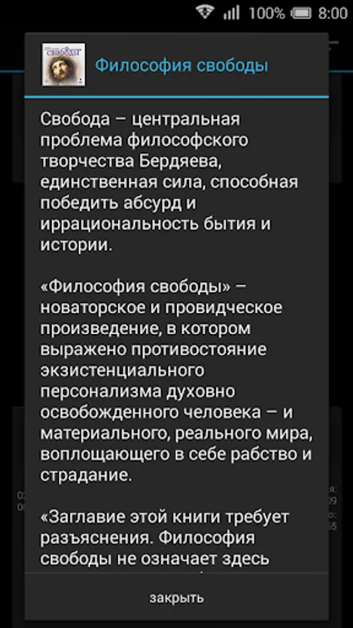 "The title of this book requires clarification. The philosophy of freedom does not mean the problem is the study of freedom as one of the problems of philosophy, freedom does not mean the object here. The philosophy of freedom means here - the philosophy of the free, the philosophy emanating from freedom, as opposed to slave philosophy, the philosophy emanating from the necessity, freedom means the condition of philosophizing subject. Free philosophy is the philosophy of religion, philosophy of intuitive philosophy of the children, not stepchildren. " Berdyaev