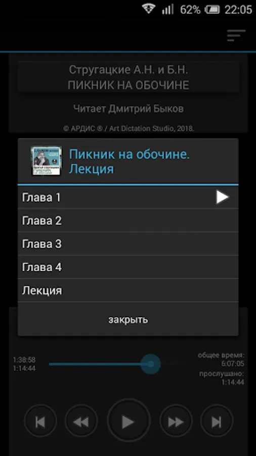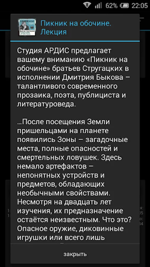 ARDIS studio offers you the "Roadside Picnic" by Strugatsky brothers by Dmitry Bykov - talented contemporary novelist, poet, essayist and literary critic.
