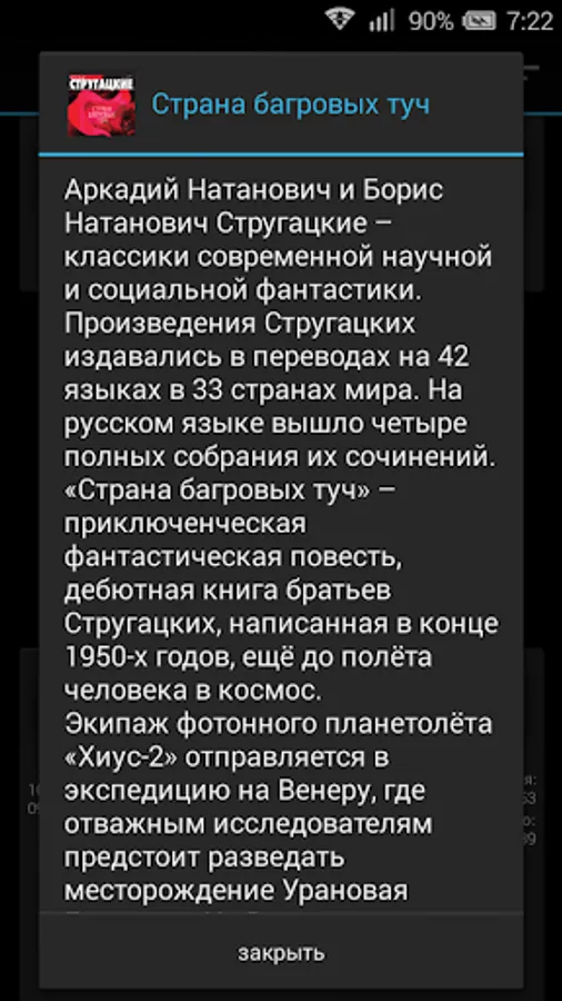 Natanovich Arkady and Boris N. Strugatsky - the classics of modern scientific and social science fiction. Artworks Strugatsky published in translation in 42 languages in 33 countries. In Russian published four full collection of their works. "Land of Crimson Clouds" - a fantastic adventure story, the debut book by the Strugatsky brothers, written in the late 1950s, before the flight into space.