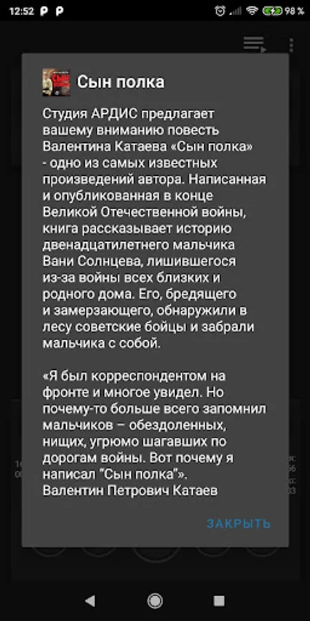 ARDIS Studio brings to your attention Valentin Kataev's story "The Son of the Regiment" - one of the most famous works of the author. Written and published at the end of the Great Patriotic War, the book tells the story of a twelve-year-old boy Vanya Solntsev, who was deprived of his family and loved ones because of the war. He, delirious and freezing, was found in the forest by Soviet soldiers and took the boy with them.