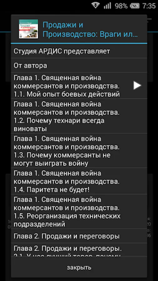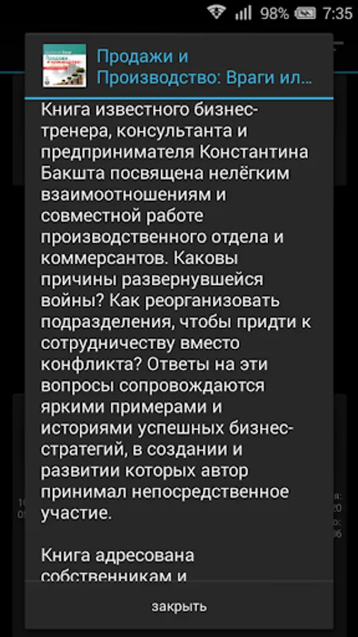 The book is well-known business coach, consultant and businessman Konstantin Baksht devoted no easy relationship and collaboration of the production department and the merchants. What are the causes of the war waged? How to reorganize departments to come up with cooperation instead of conflict? Answers to these questions are accompanied by vivid examples and stories of successful business strategies in the creation and development of which the author was directly involved.