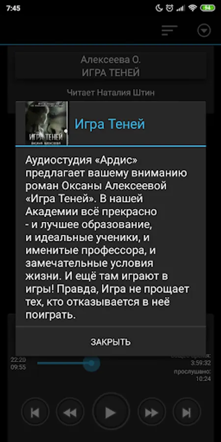 Audio Studio "Ardis" brings to your attention the novel by Oksana Alekseeva "Game of Shadows."
