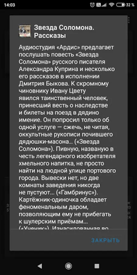 Audio studio "Ardis" offers to listen to the story "The Star of Solomon" by Russian writer Alexander Kuprin and several of his stories performed by Dmitry Bykov.