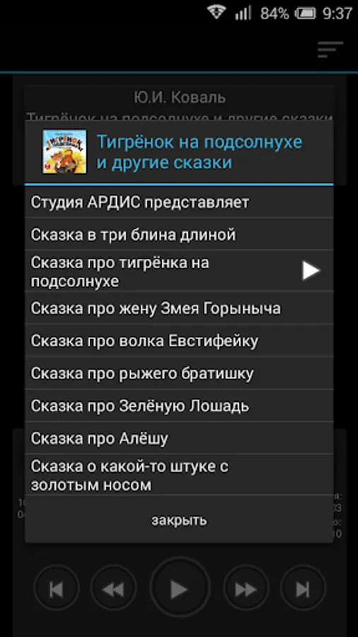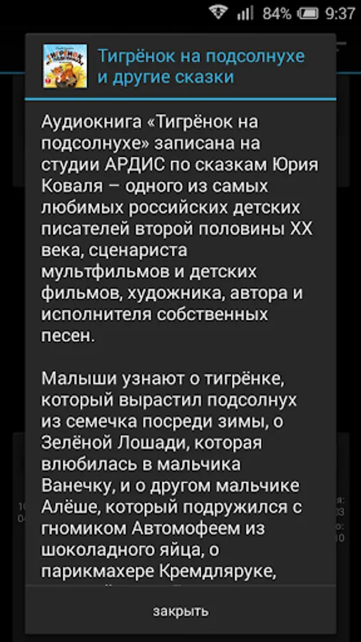 Audiobook "Tiger on sunflower" recorded at the studio ARDIS tales Yuri Koval - one of the most popular Russian children's writers of the second half of the XX century, a writer of children's films and cartoons, artist, author and performer of his own songs.