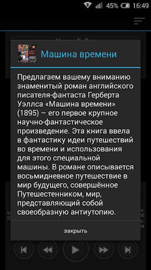 We offer you the famous novel by British science fiction writer HG Wells' The Time Machine "(1895) - his first major science fiction. This book introduced the fiction travel ideas in time and use for this special machine. The novel describes the eight-day journey into the future of the world, committed Puteshestennikom, the world is a kind of dystopia.