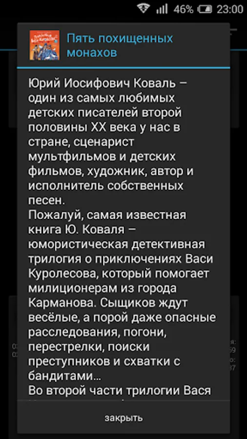 Perhaps the most famous book Y. Koval - humorous detective trilogy about the adventures of Vasi Kurolesov that helps police officers from Karmanova. Investigators are waiting for funny and sometimes even dangerous investigation, the chase, shootout, the search for criminals and fight with the bandits ...
