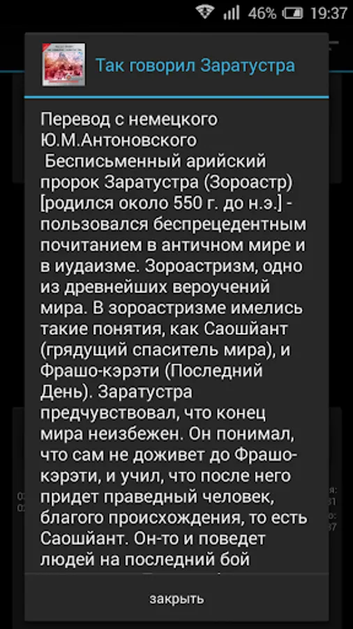 Treatise Nietzsche's "Thus Spake Zarathustra" - written in the genre of the philosophical and literary prose. This book - a sort of Nietzsche's Bible. In Nietzsche's recognition, it descended two "visions": first, the idea of "eternal return", and then the image of Zarathustra. Acquainted with this book, SL Frank wrote: "I was shocked - not the teaching of Nietzsche - and the atmosphere of the depth of the spiritual life, spiritual struggle, which emanated from this book."
